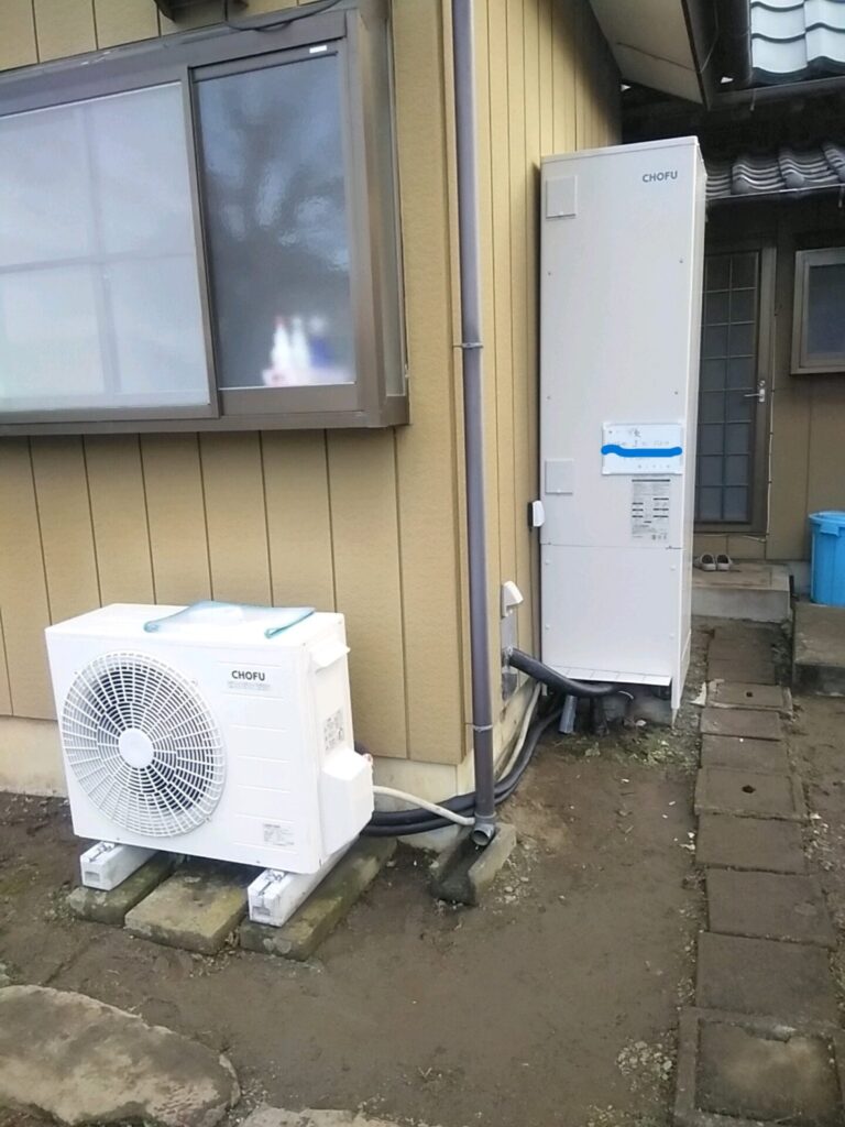 つくば市 泉で ダイキンエコキュートから長府スリムタイプエコキュートの交換施工です。
