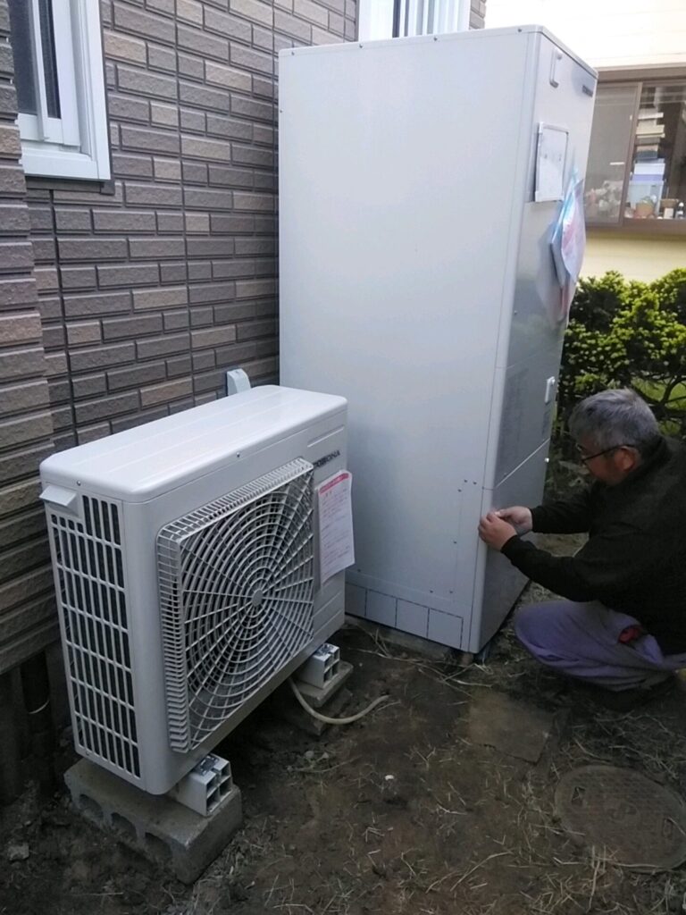 つくば市 北条 新町で コロナのエコキュートの施工取り付けです。