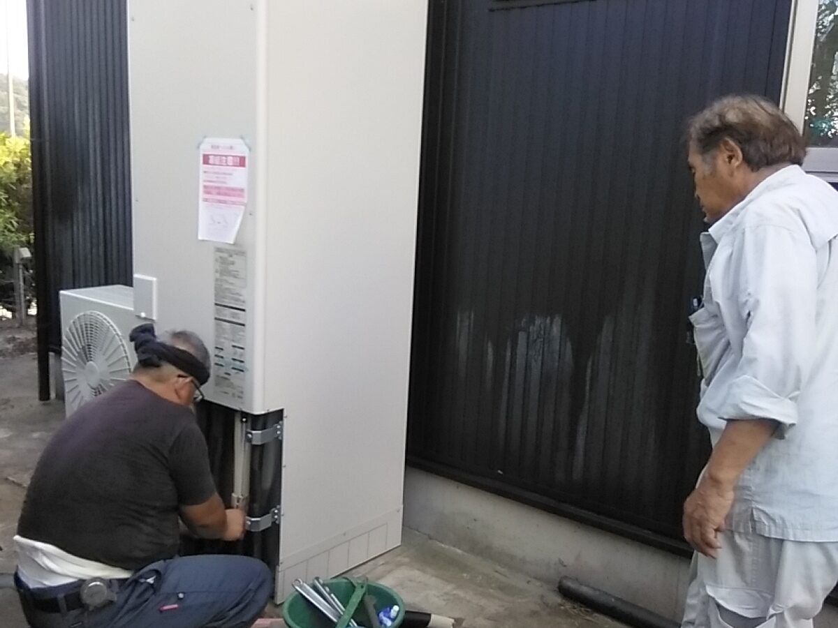暑い9月の17日です。残暑厳しく 気温も35度になる一日でした。猛暑の中 エコキュートの交換に電気配線工事が 坦々と進み完工いたしました。パナソニックエコキュートは通信機器関連リモコン制御はとても巧妙で良く作られております。ご注文いただき ありがとうございました。