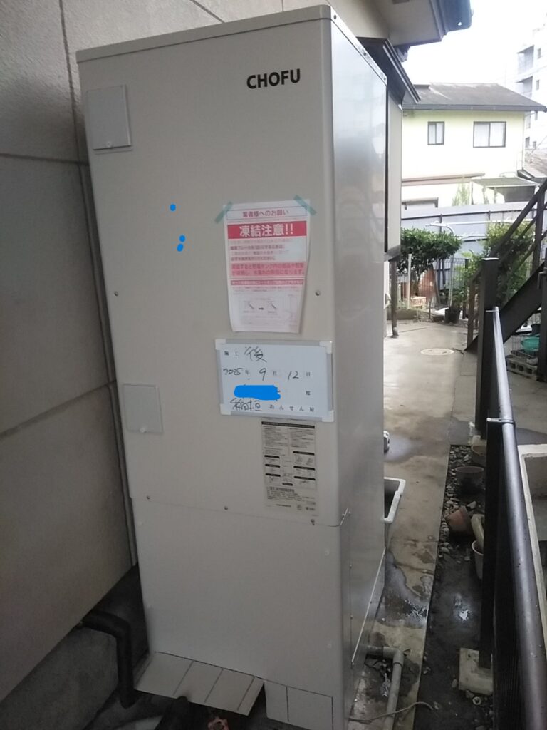今回は古いエコキュートの経年劣化での交換です。頑丈な作りの 長府エコキュートの取り付けです。ステンレス製のアンカーボルトなど 一流の部材を使用しての 施工です。ご注文ありがとうございました。