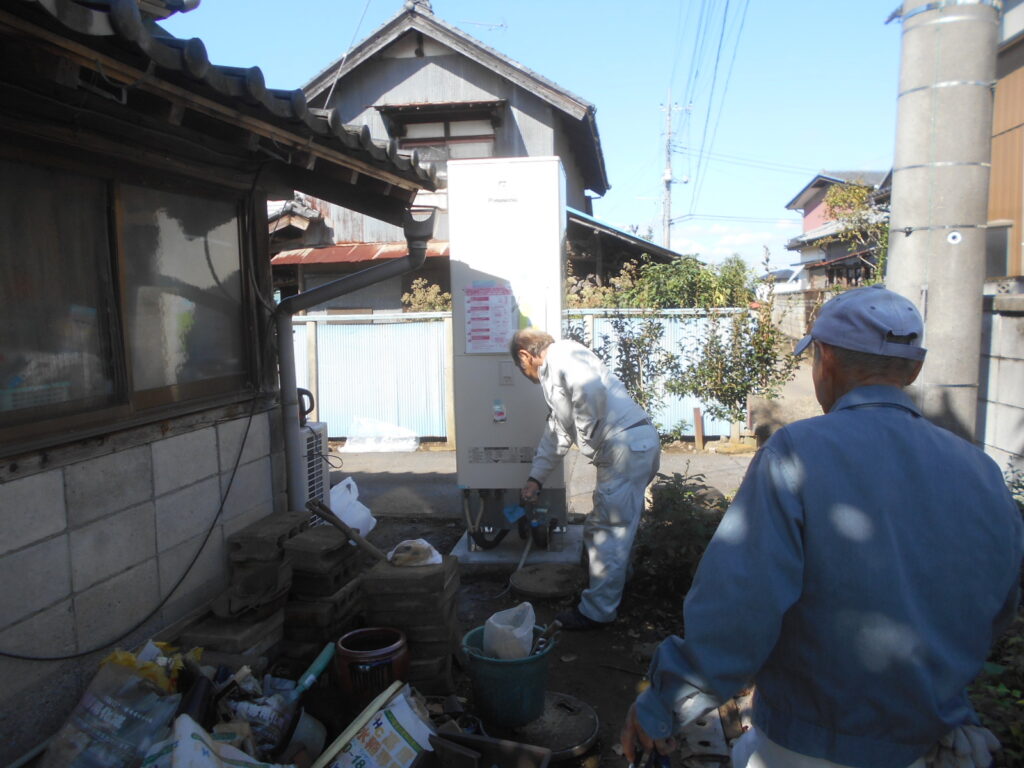 パナソニックHE-J46LQSセミオートの施工です。下妻市鎌庭は鬼怒川の関もある田園地帯です。千代川中学のある場所で 千代川村だったころの中心地です。狭くて搬入に 手間取りましたが無事 終わりました。