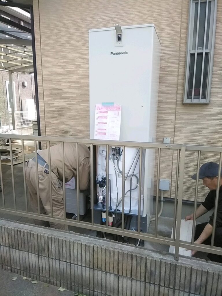 パナソニックエコキュートは脚が4本脚になりましたので とても堅牢な造りになりました。パナソニック製品は 修理がしやすく整備性も 良好です。ご依頼ありがとうございました。朝は曇り空でしたが お昼は爽やかな一日になりました。