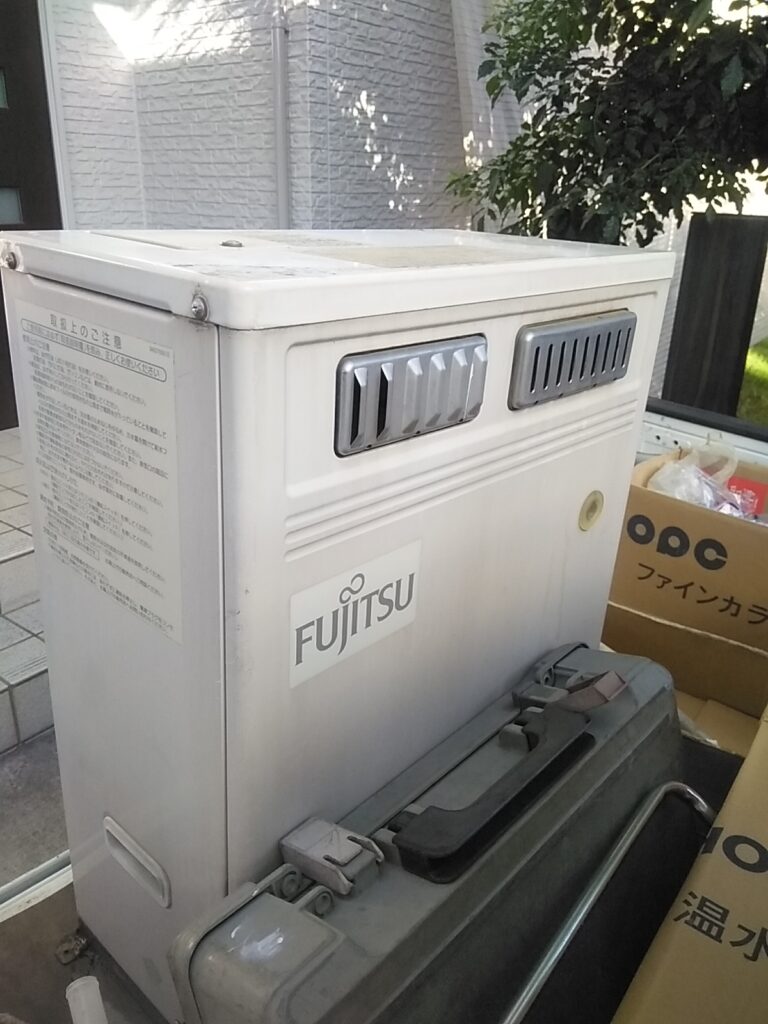 今まで末永く ご利用になりました富士通の温水暖房機からの 交換での画像です。長府製作所の温水暖房機に交換いたしました。価格も手ごろで 室内に汚れた排気も出ない とても清潔で 安心な 温水暖房機です。