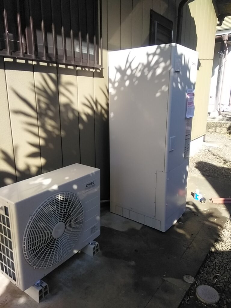 下妻市で エコキュート交換の御用命は おんせん屋へ、どうぞ。各社 パナソニック 三菱 ダイキン コロナ パナソニック製品 取り揃えております。この画像は 長府エコキュートEHP3705BXの施工画像です。下妻市は 田町 大串 騰波ノ江 高道祖 柳橋 宗道 原 大木 大園木 鯨 砂子 比毛 古沢 長塚など各地施工の実績あります。