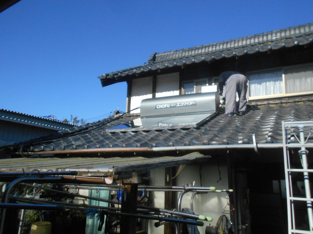 土浦市 今泉での 太陽熱温水器の設置風景です。太陽熱温水器は 省エネ効果は 抜群です。お気軽に お問い合わせくださいませ。
