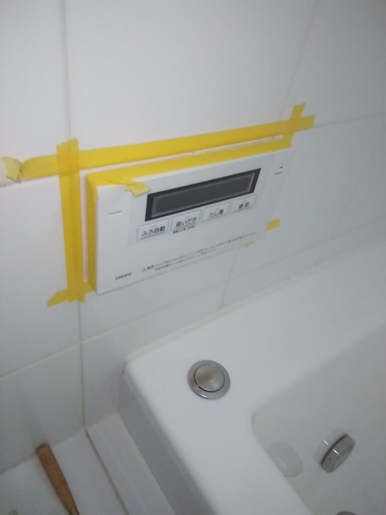 エコキュートのコントローラー リモコンの 周囲の 防水シリコンでシーリングの作業です。防カビのシーリング材使い 永く清潔感を保ちます。細かいところまで 最新の気配りをしながら エコキュートの設置をいたします。