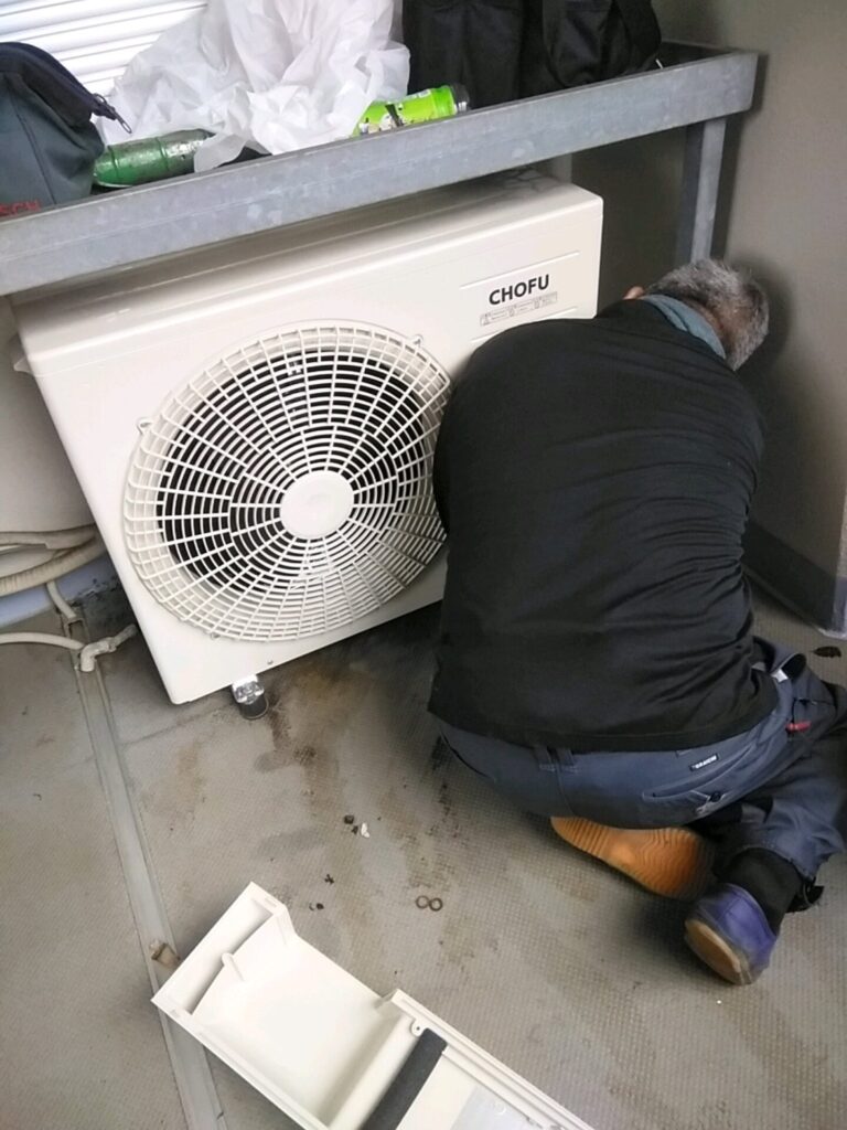 長府のオートタイプのエコキュートを三菱レジデンス様で 取付させていただきました。取り付けまでの約一週間 入浴に 御不自由無いように 三菱ダイアホットエコキュートのヒートポンプを仮設設置しまして 入浴可能にいたしました。その後エコキュート交換本施工いたしまして 無事引き渡し完了しました。アンカーボルトに最新の注意を 気配りして 既存配管に当たらないようにしまして アンカーボルトの交換完了です。
