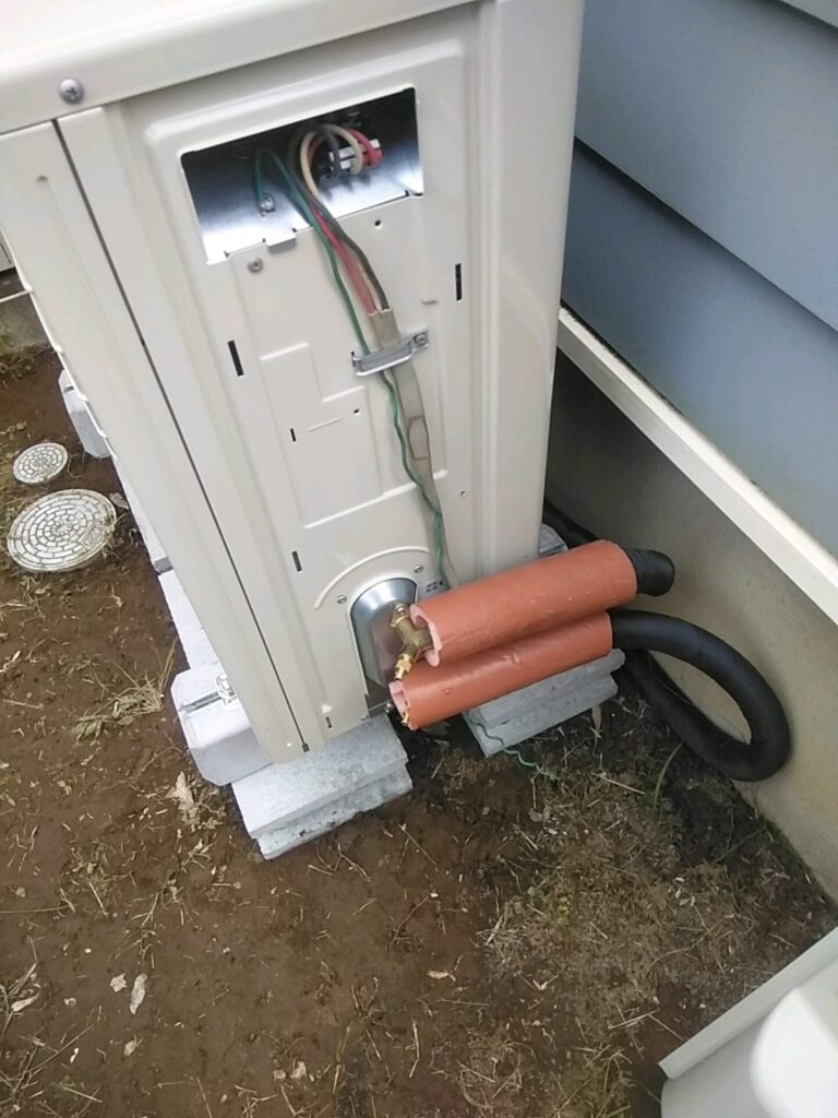 ヒートポンプの配管連結部分も きっちり断熱して凍結予防した施工で 行います。 お客様の大切な お金を有効活用して 永くエコキュートを利用していただく気持ちで 作業進めていきます。据え付けの場所が 関東ローム層で 軟弱で めり込みますので 捨てブロックを敷き詰め きっちり作業をしていきます。当店では どこよりも正確で堅牢な仕上がりを 極めております。茨城県登録業者の 名前に 誇りをもって施工しております。